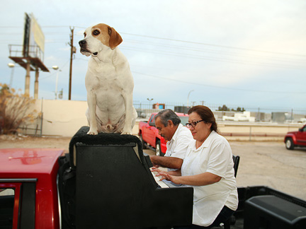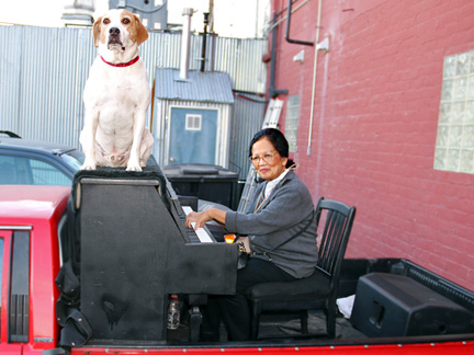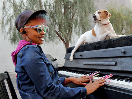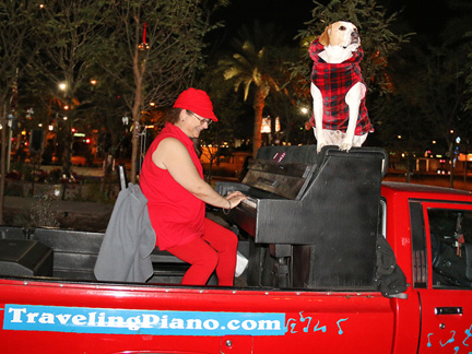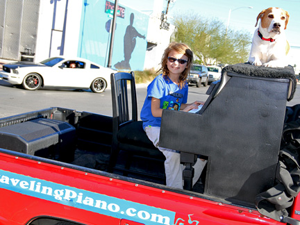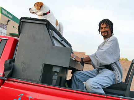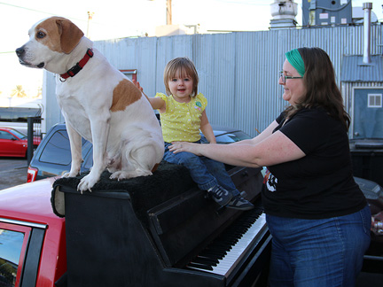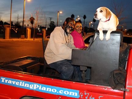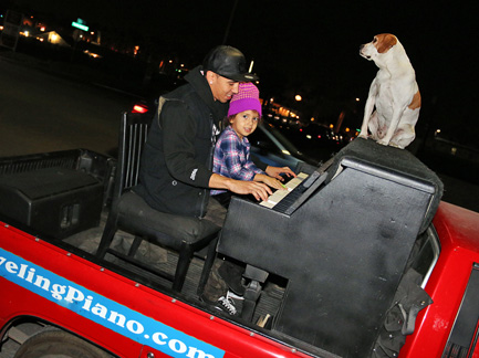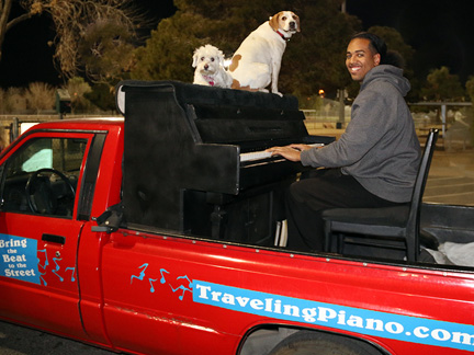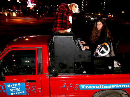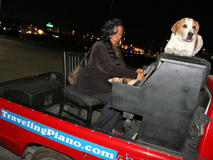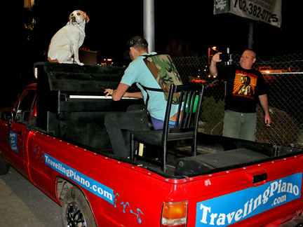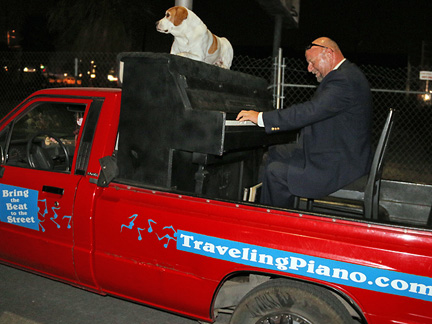 It is a great thing to be in community with neighbors and friends by simply hanging out. Mo and I parked on the corner across the street from where we live in my neighborhood of the Arts District tonight with the Traveling Piano for some Musical Fun, Friendship and Respect. People we know stopped by and I met a few new neighbors. Another prostitution hook up happened from the Traveling Piano, lol... thats the third in the last six months. Last time it was a girl that worked a guy from the truck and this time it was the other way around. The First Friday event was happening up the street a few blocks so this is always a more crazy night than usual. I'm still reeling from yesterday and absolutely spoiled from playing on a real half decent piano for the last two days.