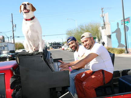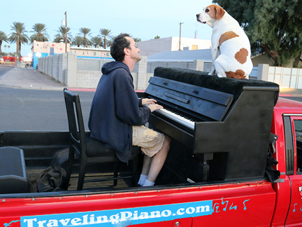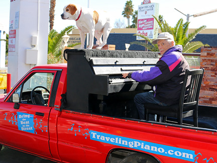His name is Lyle and he's in his forties. Amazingly enough I met his sister about a half year ago. I'm sure I even wrote it in this blog because it was significant. It was dark and he was laying on the ground. She found him while visiting Las Vegas and wanted to give him some love with total respect. She lives in another state and was visiting. She knows the area as Lyle has been living here for a long time. He is an innocent spirt. I got a feeling that he is living a self-image that was put onto him. Also, he had a serious accident years ago that has made his body and mind weak. The guy definitely is not an alcoholic or drug addict. Since everything is always about me... I realized that his interaction was so significant because of the fact that he would even hang out with me, interact, partake in my life and journey, just spend some time with me as a human being and with other agenda. I have a tremendous amount of gratitude for that. We were not afraid to interact with each other. He could tell I was not about pity or labeling or putting any judgement on him. As a child, this was the type of person I was raised to be most afraid of, raised to pity and judge from afar... to distance myself from in reality as much as possible. Always from childhood I knew that was wrong, wrong, wrong. Actualizing the truth as an adult moves my soul with total compassion, empathy... fun, friendship and respect. Even Mo could smell the truth. He kept reaching out for the guy with his paw and then when the guy responded he sat still on the piano for him. Often Mo will shy away from homeless people and with almost all people now moves to the opposite side of the piano. I'm glad Lyle did not climb into the truck. He would have permanently smelled up the piano seat, lol! He was really, really tired and hurting but knows of nothing else for his life. As with ALL homeless people I meet, they want to work to make their way but circumstances block the way. We shook hands, he looked me in the eye and I think we both got some reassurance of what is most important for life and that is love of individual spirit together as one.