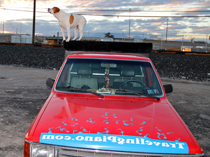 Moving on, wow will I ever do it, can I, should I? It is one day at a time. It does feel like I am settling into a positive direction. Will I walk down that yellow brick road? I would like to present myself as an artist in residence. That could be for a town, neighborhood, shopping center, casino, maybe for a company. In doing that I would have a home base to work from as in a building for the Traveling Piano. It would give me a family feel, being part of, something larger than myself in being of service. The place could be marketed as a tourist destination. The art could be a one of a kind Traveling Piano. Many different services could be provided on and off the truck, there is product to sell, opportunities for community outreach, a vehicle to partner with and for presenting guest artists, to promote, create a show... I think this route would be better than finding backers and they may show up anyway along the process. Representation may be needed to sell the idea for me. How that would happen with no money... well first I need to just go fishing and exploring. If I am going to continue with the Traveling Piano, there needs to be a new one. I mean, thirty three years on the same truck... physically its showing as much age as my body, lol!