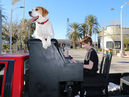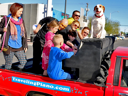 I went to a yoga class and to also give the instructors young son his second piano class in appreciation for the access to yoga at the yoga center but... mixed up the day again! It was a beautiful day. I had told the guy next door who opened a new restaurant that I would play in front of his place sometime as a welcoming gift to the neighborhood. Today turned out to be that day. I've been out every day with the Traveling Piano which is a little unusual for this period of the journey. I think it may be the weather. It is perfectly sunny, not too dry and in the mid 70's. It feels like spring back east. The birds were chirpings and a light breeze blew by every once in a while... These facts create a little conflict in my mind because there has been no winter and I am not looking forward to the brutal summer ahead. I cannot work in a hundred twenty degrees and I do not want it to happen too fast! Projecting has been an impulse for me lately that need to just stop.