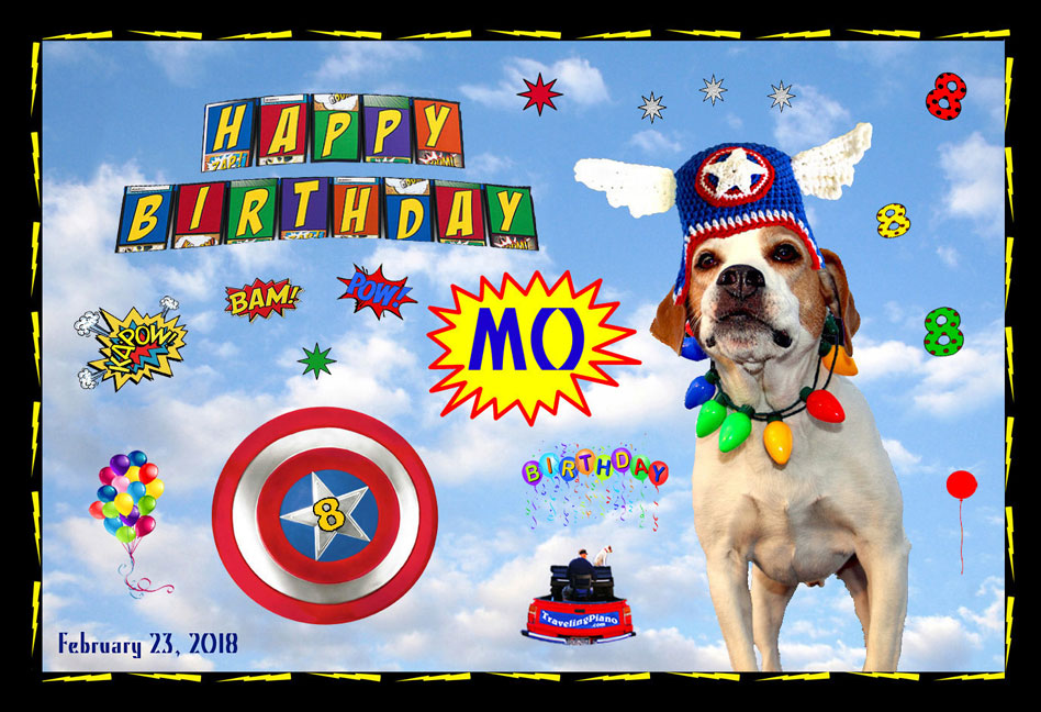 Thank God millions of times for Mo. Mo and Bo both as one, spirits to support me on my journey of life. Thank God I have learned respect. Boner was my vehicle for respect. I learned to respect him as a dog on his level with his needs not mine or unrealistically. Mo... he's just with me by my side twenty four hours a day and I need that, no question about it. I'm aware of what is going on in the world, the passing of friends to be no more, my own limitations with age and ability, etc... It is on my mind that Traveling Piano Dog Boner passed eight years ago in a few days on the 21st. And then, miraculously Mo was born three days later on the 23th. I'm feeling melancholy. Anyway, we got a blast of winter today and tonight went down to almost freezing. I miss winter. In my eskimo hat and thermal clothes Mo and I went for a walk while I sucked in the cold air. That felt really, really good especially knowing it will not last and the heat will be here before I know it. One night in the entire year with temperature near freezing, lol! I enjoyed it.