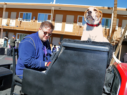 Talk about changes of environment, I began with the Traveling Piano in downtown Las Vegas across the street from the Salvation Army creating music and interacting with people who were waiting to get in to sleep on a cot overnight. There is a gun murderer on the lose killing homeless people, 2 murdered, 2 shot to date. To hang out in the area I feel is important to counteract some of the fear and insecurity that the most vulnerable people in society are experiencing. I do not attach the idea of Mo or myself getting shot with my intent and purpose. That... would serve no purpose for my agenda. A woman came up to say, "You know we all really appreciate you being around here". Homeless people are always expressing appreciation. Afterwards, we drove to Downtown Summerlin for a Chinese New Year parade. The area is very affluent and the shopping district could have had a parade that lasted at least five minutes for the like 20,000 people that showed up for it? The pictures I am posting today, these parade entries were fantastic but... that was it along with eleven girls dressed in red two of them on stilts and seven guys, two with small drums, lol!