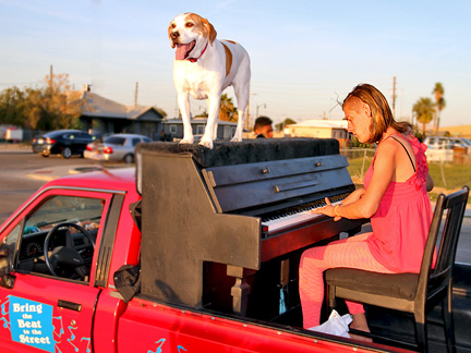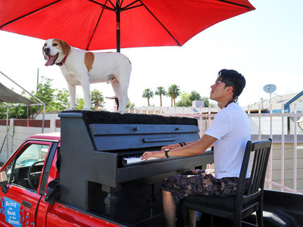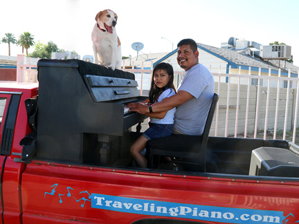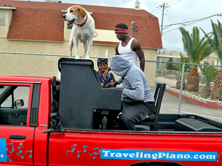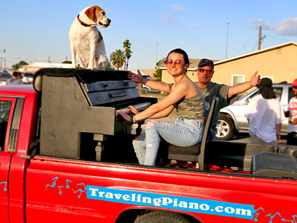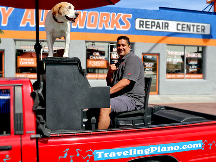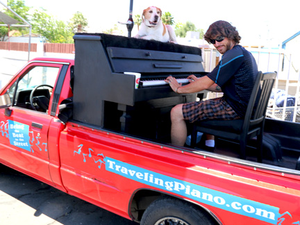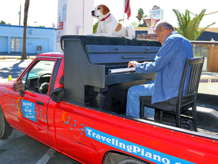 Finally, I have made a commitment for every Saturday to play around the corner from where I live in front of Quality AutoWorks on main street in the Arts District. This auto shop has offered to help me with truck repairs when needed. It feels perfect, lets see how long it lasts. Also, I need to get a few pictures to hang on the wall in the waiting room to try and sell. I need to get this together before they give up on waiting and get their own pictures to hang. What a dilemma because all the pictures I have that you see on this website are processed into a resolution that will not work for printed material larger than 4"x6". I do not have the resources or expertise to take my raw images and duplicate them for any larger picture format. God help me! Then again, this is all going to be so much work... I need clear direction for myself. It exists for doing what I do with the Traveling Piano but nothing more. Funds must be created immediately to secure my rent, gas expenses, clothes, etc... While creating music today the shade umbrella got swept away from the wind and broke. Ahh... another challenge to deal with especially with the stronger sun and heat coming soon.