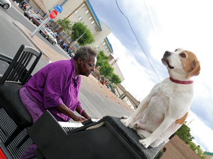 And the volume switch just stayed on loud the entire time which was just fine. It had to be, as it is now loud or nothing. I'm sure the music sound traveled for blocks and blocks. It felt really good playing on the street with purpose. I need purpose now to play in areas of business. Mo and I met neighbors and business owners and with people gathering (never more than five at a time) I felt as sense of community mingling which is what I am out to achieve through the Traveling Piano. It is time to move in a new direction, that of support, money, business, etc... it is a process that has been happening for over two years now, lol. It just needs to happen while keeping the agenda pure with no tips, fees, or commercial affiliation in the conventional way of "selling" whatever. Selling community involvement... that I can do.