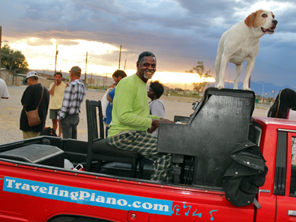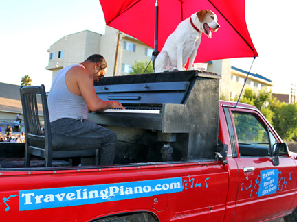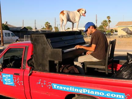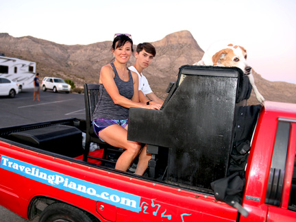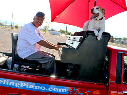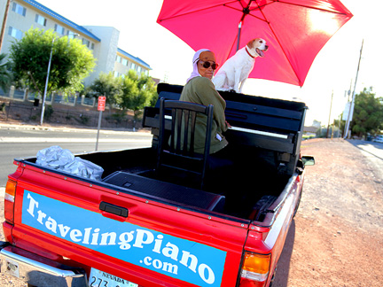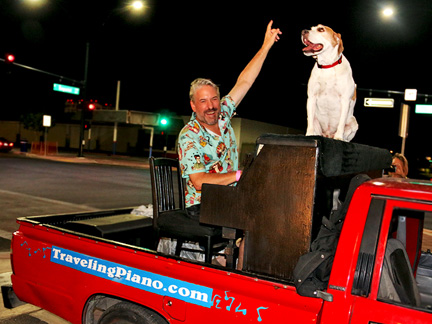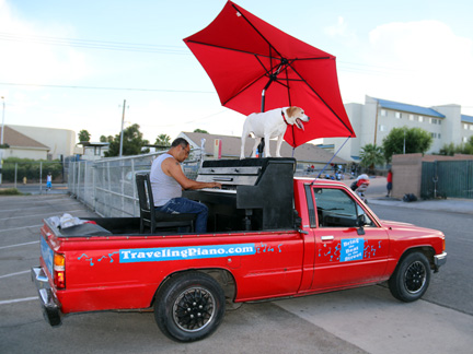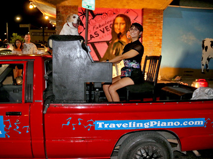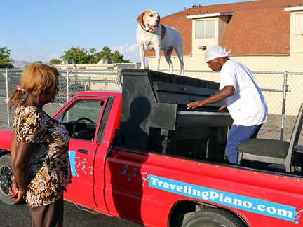 Las Vegas has a Traveling Piano, a piano on the back of a pickup truck for everyone, no exceptions. It is unlike anything, anywhere else in the world. The Traveling Piano inspires community involvement through one-on-one relationships for the sake of Musical Fun, Friendship and Respect. There is no other agenda and there are no fees or tips associated with the Traveling Piano. It is not a commercial vehicle.