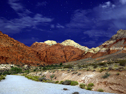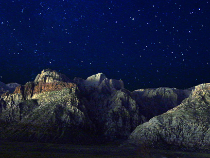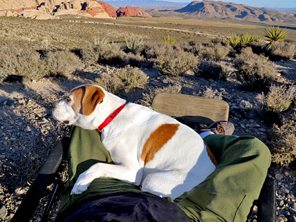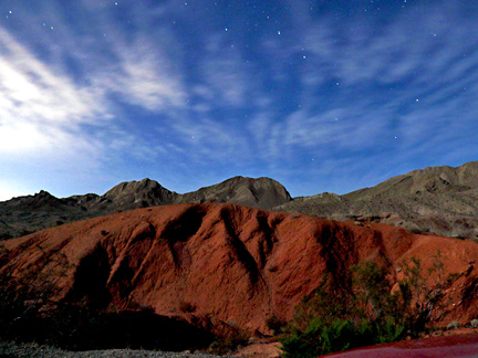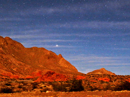 Determined, we drove twice the distance in the opposite direction to where we would not see one light bulb in the distance, hear only one car if that every half hour and to where we could just "be." The moon was bright, almost too bright for my state of mind, we just waited for it to pass below the horizon. We left about one thirty in the morning. This is about the third or fourth time alone in nature in the dark away from all civilization in the desert surrounded by mountains in a space so large, it is all just open. I felt nothIng but gratitude. With Mo laying in my lap as we lay together in a lounge chair, we simply felt our togetherness, peace and love in space and time. Every once in a while the winds would pick up and the sounds of musical wind swirling in all directions bouncing and swooshing... and then quiet. That would repeat ever half hour or so. Lastly, the stars and the Milky Way... just wow. The picture taking was not so great but still I got a few. The atmosphere was dusty. In my pictures, some of the stars are red and I thought that was my camera. No, I learned that some stars are red! In fact they are many different color stars and planets. Hence, the "red planet." It never sunk in before, it is because the planet is actually red!