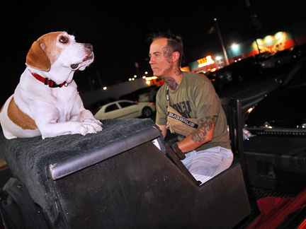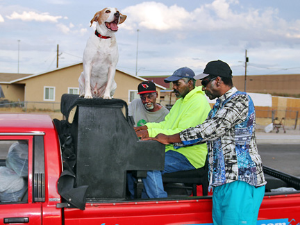 There was creating music as usual at the mission center today and giving water out at night on the streets, making pitches to neighborhood business to become stable financially, to get a new keyboard, some signage for the truck and had nothing but rejections... I'm going to start a fundraiser for Mo and am going through hell trying to hang a big piece of lattice I purchased to hang pictures from in the auto shop around the corner. So far I have been back and forth to the store three times trying to get the correct hardware. It is amazing how with my difficulties in functioning, I am still able to shine and live in gratitude. A lot of that comes from relating with the people I know living on the streets. And Mo... his constant companionship is just awesome. When I went to play music today you would not believe how difficult it was for me to switch work modes from trying to stay alive financially verses dong Traveling Pano work.