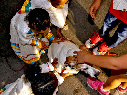 There were thousands of people there and they were respectful, polite, educated... it was very interesting considering how fundamental they are and actually repressive and hostile to groups they do not really understand about, such as with people who are gay. You would think having been repressed themselves as Christians, people of color, etc... they would have more compassion and empathy when directing prejudice from themselves onto others. They were kissing up to the police, political reps, the mayor with acknowledgment in the ceremony and made sure there was an American flag flying on the stage, lol. The little kids were all over Mo and he was just such a good boy about it with up to eight hands at a time petting him! I love the diversity of communities here in Las Vegas. They all function in different ways but mostly through church congregations. It reminded me when I ran into a Philippine church celebration day last year. Everyone likes each other until differing view points according to rules and doctrines surface, eh?