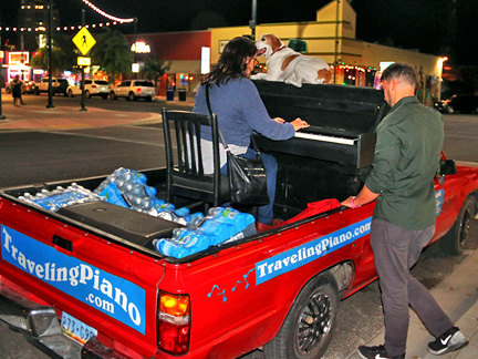 So, I am figuring this all out. Hopefully I'll figure out enough to pay the rent at the end of the month and get myself through. I absolutely need a new piano as well. Please create a subscription here on this website to sustain the Traveling Piano's work. Hit the contribute button. I am going to present the Traveling Piano on Main Street six days a week if possible for at least an hour a day to start, while doing everything else I've been doing. I was there today. When people try to hand me money I say no but I did take five bucks twice. The one guy felt relieved I took it and thanked me? A sign might help saying... if you would like to contribute please purchase a Traveling Piano Art Photo. People will just need to learn that I am not street performing or busking. This education for others will be a challenge. I can do it. I taught people to pay for my performing on the truck, up to $2500 an hour for twenty years back when. Before the sun set we drove to the ghetto. A bunch of people on the sidewalk yelled, "stop here" and so I did. They watched out for the cops for me as they harass anyone who stops on the streets around where I was. So I played a little, a guy got up on the piano a little, they all began to yell cops... and Mo and I ran. Lol!