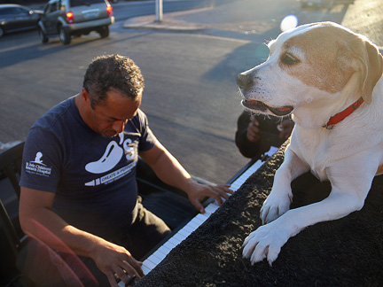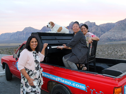 First, the best thing to happen to me today was Print Fast Vegas. This printing company generously came through for me. In a very short amount of time they produced two large free standing signs, a bunch of large smiley faces, a couple of "Contribute" signs and 200 quality color flyers without cost. This was a lot of work for them to do and it was a rush job as well. And then with the material costs, it is a little overwhelming for me, the gratitude I have for their contributing at a time when I really am in need. Then there is Quality Auto who gave me the space to use, and their business equipment, lighting, table, extension chord, power, etc... I set everything up and began playing/selling on the street. There were less people then I expected but the third best thing to happen to me today... all the people I met and the diversity as well as people I have not seen in awhile. The piano was crap today. It is just getting worse and worse to try and create music on. But the people... just wonderful. A married couple celebrating their first meeting today twenty five years ago. Neighbors, several people living on the streets I know, cool hipsters, suburbanites, city dwellers, little kids... I meet some people living here in Las Vegas from Zacatecas, Mexico where the Traveling Piano spent time in 2007.