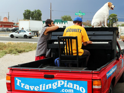 The Traveling Piano now has 19 subscribers which equals almost twenty one percent of "basic" monthly income needs! There are no tips, fees, or commercialization affiliation associated with the Traveling Piano. That fact is part of the brand. There are no sources of support other than from you my friends. Would you please help bring that percentage up for our basic needs before we go down into a darkness never to return? There are also other costs. This month I must raise money for truck insurance, website costs and there are piano and computer needs as I do not use a cell phone for my work... and more. If you need help or have a problem accessing the subscription link, email me and I will walk you through the process. There is a contribute button to the left of this page. Here's looking forward...