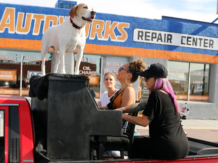 What a challenge and not necessarily what I prefer to be doing but I know always as I look back on life, I do the right things, exactly what I should be doing. My blog photos more and more are going to be less and less of nature and varieties of locations... like, just one location which is not fun for this blog but, this blog is not bringing in any money which is a must immediately. So, we spent the day on the corner of Utah and Main streets in Downtown Las Vegas at the Traveling Piano Photo Art gallery studio in the waiting room of an auto repair shop. The photos to sell can't go up yet because they need shade from the sun that sears through the windows. More setup material and product to sell are needed. But, I'm putting in the time, one foot in front of the other and hopefully everything will materialize. I spent nine hours at the shop today mostly trying to design promo material that takes for ever on the old backup computer I'm using. I interact with people on the street with the music only when they engage me from the outside while I'm inside because that truck piano batteries are running low and only get about an hour a days use and the piano itself is just beat. So the less I use it the more time that will by in staying alive. I met an amazing musician from Puerto Rico as well a classical pianist with her dog and just a bunch of really cool Las Vegas locals. Please send a contribution... www.paypal.me/dannykean