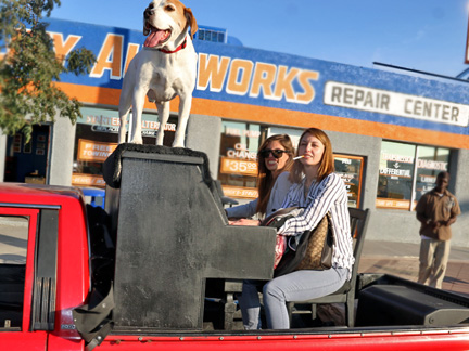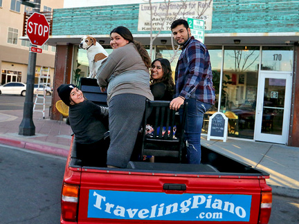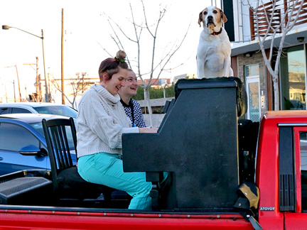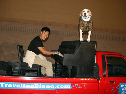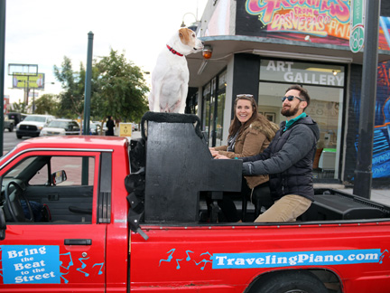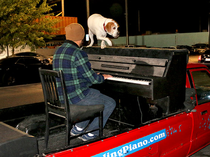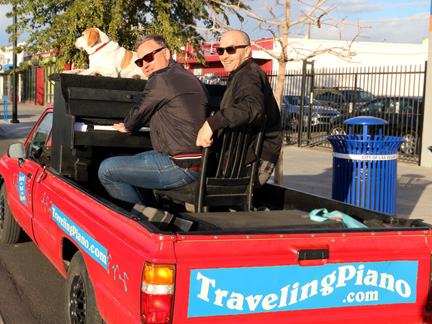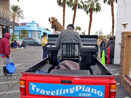 Tomorrow there is a Chinese New Years parade starting right outside the Traveling Piano picture gallery. They were not interested in my participation which is foolish because The Traveling Piano would be the best and most memorable aspect of the entire event. How do I know this? Because most of my work for twenty years prior to this journey was being hired for parades. I wanted the Traveling Piano present but somewhat under the radar as to not be the center of attention at the line up which would have been especially with Mo on top of the piano, So, I arranged to have the truck across the street in the used car lot of friends who own that place.