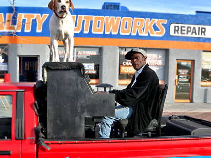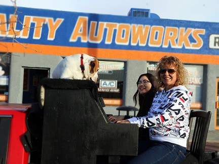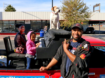George who works at Quality Auto fixed my speaker today. It took waiting several hours because he had to do it between his normal workings. Denise the owner of the shop put in my new batteries. While waiting for it all I gave the piano and truck bed a new paint job. A local muralist who's name is Anne, is working on a job across the street and she stopped by to help me the truck painting. That, and also extra cushion has been needed for the piano seat. She wanted to do that but took on more than she can handle. I'm not so sure how long the job she did will last. It is time to take the truck out into more upscale neighborhoods in Las Vegas to create more of a showcase for... what, I don't know except that I need funding. My worth cannot be compromised. Doing anything for an event will be tricky as always in how I wrap my brain around the situation in order to negotiate a satisfactory outcome for everyone if... someone wants to use the Traveling Piano.