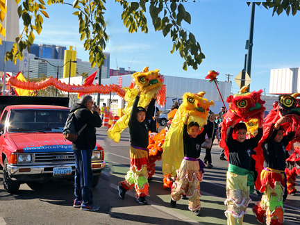 I forced myself to get up and out at eight this morning as a Chinese New Years Day Parade was happening. It was starting right outside of where the Traveling Piano Photo Gallery is. My truck was going to be parked across the street in the used auto dealer parking lot and meant to be visible but not draw too much attention. My ?friends? who own the place decided not to have it even showing on their property and had it stored overnight in their dealership garage. That was disappointing. I told them they should have followed through with their original decision and/or told me of the change as soon as they decided on it because as a result I might not even get it on the street for the day with it being closed down. I rushed to get the Traveling Piano out and into its usual spot on the street. It turned out that was no a problem. I thought it might be. I got it there within a minute of the street being shut down. Talk about timing! So as I tried to wake up, the parade happened. It was not to long or big. The truck was just present with the gallery signs up.