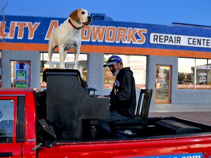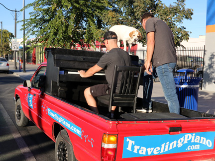 I was completely out of it today, just could not do anything. I took Mo for a short dessert walk. It is a period of time for me now adjusting to a new structure, new activities and a little change of purpose. Change has never been easy for me. Right now there is less Traveling Piano interaction with people living on the streets and the taking care of homeless people in the middle of the nights with food, water and blankets. I derived a lot of personal inspiration and worth from that over the last year. Now, I must focus on securing my life so I do not find myself in their life position and create new personal inspiration. I walk less, Mo gets less exercise now. Finding ways to eat, cook, keep my place clean on a new time schedule is just crazy for me. I think a large part of my exhaustion is from the emotional and physical work of painting the piano and truck bed yesterday. All is well.