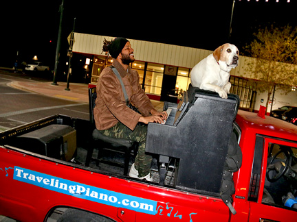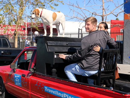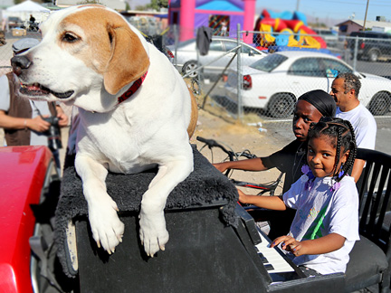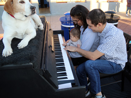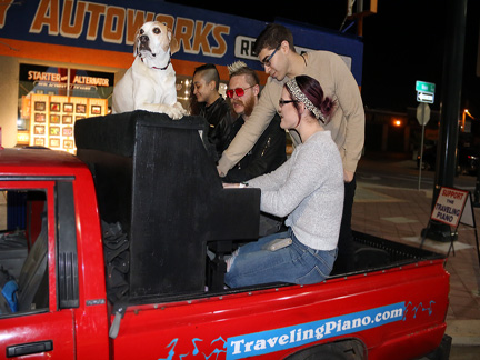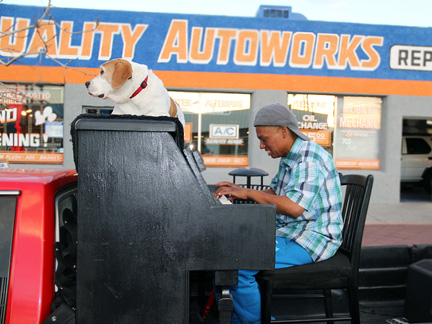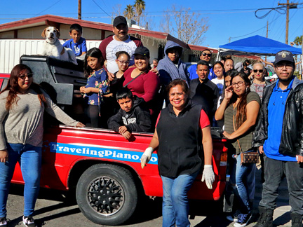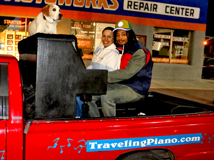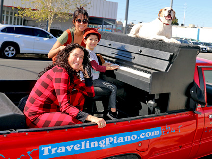 It felt so right to have landed at this random function with the Traveling Piano. It was just like the old journey days, spontaneous and synchronistic. About fifty percent of the people spoke English the rest Spanish and all ages were represented. It was perfect, my energy came back, it was nice and sunny, Mo was happy, we spent about four hours drawing in people who were driving by while kids stood with signs to sell tacos and other food. It was just a happy time of musical fun, friendship and respect with empowerment and inspiration. A bunch of teenagers spent about a half hour figuring out a favorite song by Kanye West and I thought how crazy that Mexican teenagers are getting sucked into that moron. Lol, I decided to just move away and let them do their thing. On the way home I ran across a girl on a skateboard with art in her hands. She hung onto the back of the Traveling Piano while I drove her down the street a little with Mo on top of the piano for a video clip she wanted to make. I feel grateful. I love to feel a sense of community and to be able to contribute, be part of. I have a lot of experience in knowing that a power greater than myself intervened today to take me out of my head and place my body exactly in a location with people where I could be be helpful not only for myself but for a caring community.