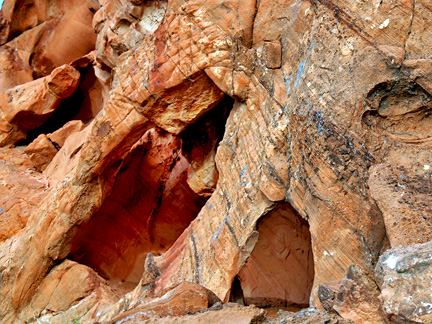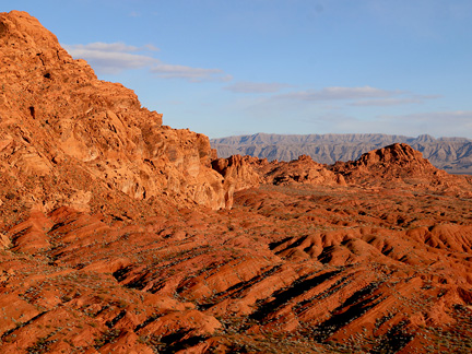 Today was interesting. I felt a little more energy and also a conscious need to feel my way through the day with what I wanted to do verses what I think I "should" do. Mo and I headed out of the parking lot not knowing where we were going and ended up driving to the Valley of Fire. Mo really needed to run around. I needed the air, open space, exercise and some exploring in nature. I figured it might be cool as it was very windy today. So I took my scarf, hat, gloves and an extra sweater. In the shade it was friggin' nose-nostril freezing cold! When we first parked not so much. I did not expect anyone to be at our first stop off point but people were there and engaged with us before Mo even got out of the truck and so, hiking took second priority. I pulled off the cover and two grandparents with their grandson from Washington state and a guy from North Carolina had some Traveling Piano fun with us. It was really great because we were all strangers connecting, one of the basic purposes for my work.