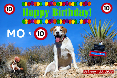 HAPPY BIRTHDAY, TRAVELING PIANO DOG MO! 10 Years Old Today. We are heading out to the Valley of Fire just outside of Las Vegas to explore in nature for the day and... we'll be sharing a large Italian Hoagie together... provolone cheese, oil and mayo, hold the onions! If you would like to help us celebrate and I hope you will... make a contribution to celebrate his life! Mo's GoFundMe