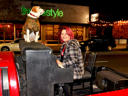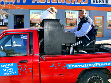 I worked my butt off giving out a couple thousand bags of chips and cookies I got my hands on from the mission center the other day for people living on the streets. Mo and I ended up on the street where the city has been shoving all of what they consider undesirables. The street has three shelters on it. I was able to position the Traveling Piano truck half way in and half way out of one of the shelter parking lots, the only one that I respect. No one was using the place to go in or out. After the giveaway I began to create music. The police could not tell me to move because I was on private property while being exposed to everyone on the streets. All the streets now have signs saying no parking, standing or anything else allowed.