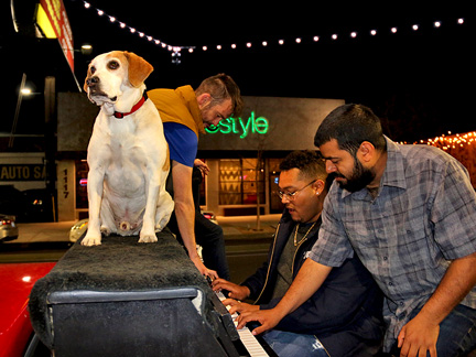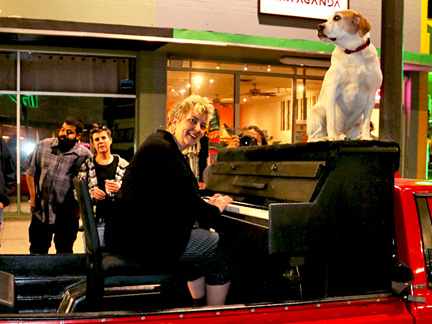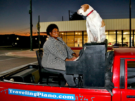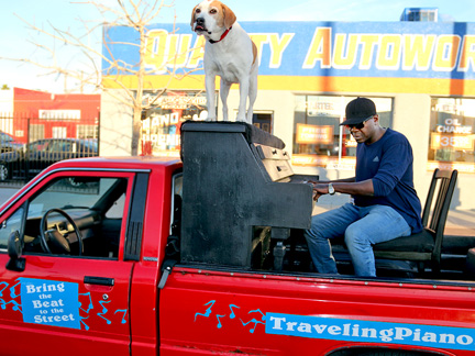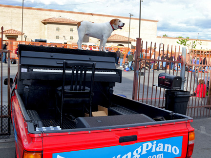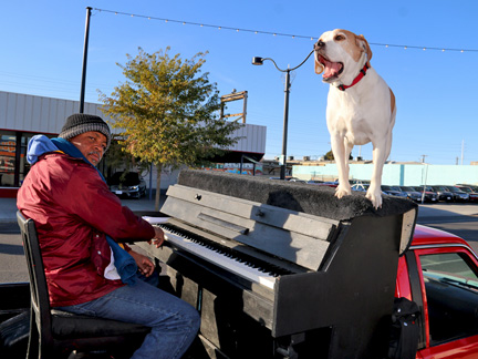 I worked twelve hours today none stop processing desert photos for print that needed to get done before midnight in order to take advantage of a repeated online sale for printing that I took advantage of a few weeks ago. There is no way I could pass it up but now coming up with the rent for next month will be a challenge. Before bed, I took Mo for a walk. I cannot tell you how amazing it feels to walk down a dark street and as I begin to pass two dark figures just standing under a bus shelter a few feet to the side of me with no bus coming... knowing they are looking at me with my first impulse to not engage... but then extending myself to acknowledge them with a low "hey" as I walk by head down... and then, about ten steps beyond in the dark I hear from behind me... "Piano" ...in acknowledgement back, it is awesome. People living on the streets are more afraid of you then you could ever believe and they think you do not want them to exist. These guys know Mo and I from somewhere with the Traveling Piano. With the word "Piano" they were saying, "I know you, I respect you." There is nothing more gratifying for me than an exchange like that. It is full of validation and reassurance all around of what being human together, is. Through the Traveling Piano it is called, taking a chance with Musical Fun, Friendship and Respect.