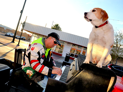 My music is both calming and fun at the same time but most importantly full of love and care. What I gift that it is flowing through me! I take zero credit for the sharing in its existence with others as they experience, for lack of any other words... the grace of God. You know, if you want to help, send us a contribution. I work with Mo as individual with no fees, tips, commercial or organizational affiliation. We ourselves are in a desperate situation right now needing the funds for basic rent, Mo's food, etc... You can do that through this website... Contribute ...or on GoFundMe... Traveling Piano Dog Mo Health and Well Being Fund ...or just send money through Paypal direct... Danny Kean Please help us have a sense of security.