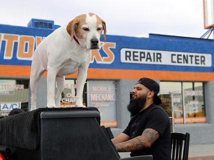 I woke up about 7:30am to take a quick pee before jumping back into bed. Then the electricity went out. I laid in bed while neighbors began to gather and chatter nervously in the parking lot. There was no getting back to sleep so I sat in my chair for two hours with practically no thought. I could not, did not want to think except that I did think about the food in my fridge and freezer I might lose at a time when I cannot replace it. Then dark clouds rolled in and it began to rain. Once they cleared the neighbors came out again and began to get high together and just laugh, chatter, be loud. It was very irritating especially after learning that a hundred people died in the USA from the virus overnight. About five people partied loud and obnoxious all day fucked out of their brains on drugs or whatever and I tried not to think about being on lock down with them outside my door for weeks maybe months. The sun came out, I took Mo for a walk. We spent some time at the (closed) Traveling Piano Art Gallery in the waiting room of the auto repair shop on main street in the Arts District of Las Vegas... which will close tomorrow for who knows how long.