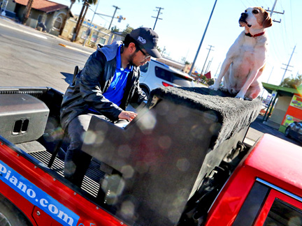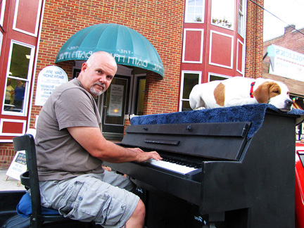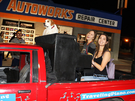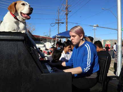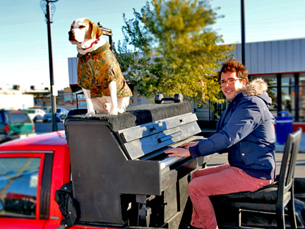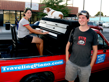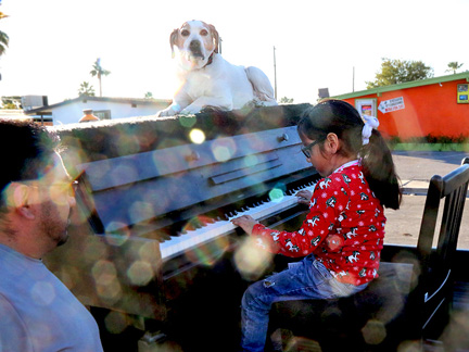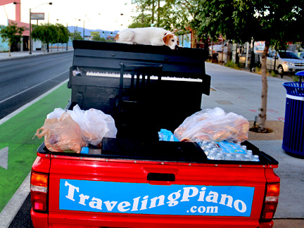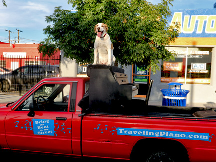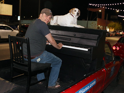 Mo and I spent a couple hours giving out water today to people on the streets. It is very hot out, a hundred degrees hot. I saw my pizza guy neighbor and asked for a pizza for free and he said, sure! So while I waited for my pepperoni, extra cheese and mushroom pizza I created some Traveling Piano music outside of his pizza parlor on the strip. While I did that at least 12 drug addicts, dealers and prostitutes climbed through a fence opening behind me to get into the abandoned motel for the night that is right behind where I live. I want to end this month with a few Traveling Piano photos from the past that I have not yet used. The pickings are getting slim. There is not one repeat photo on this entire blog of the same person. That is always something that I have had fun with, that fact that there have been so many different people on the Traveling Piano throughout the years. I really do hope it is not all over... the aspect of sharing the piano. One day at a time...