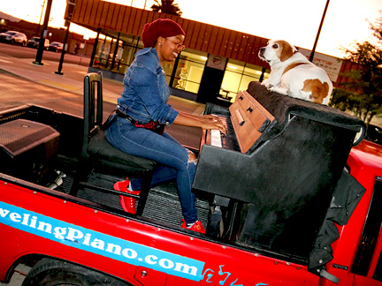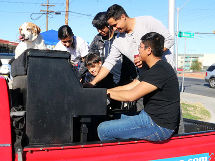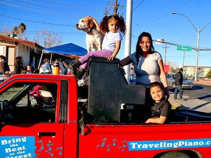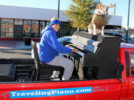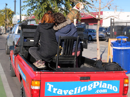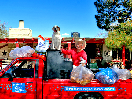 They come running to me and I tell them to stay where they are because i do not need to be creating attention with what I am doing. I have about a hundred people in my small circle on my routes. I have a little concern about using the gas money these days but I cannot do it without the truck. When it got dark I hit a new area and found mentally ill people in the deserted corners of strip malls, two mothers with two grown men... all of them mentally ill, drug addicted, ugh it was very depressing. People now wearing the same clothes for weeks because of a lack or resources, just trying to hold on. I wish I had the energy to feed them and also provide music but I only can do so much... all, through amazing gratitude. The pictures posted today of people on the Traveling Piano are from the past.