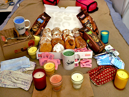 My friend Joanne from Berkeley Springs West Virginia who makes hand-poured soy candles for her Twilight Candle Shop sent me a box of them today as a gift! Candles are therapeutic for me. My friend Doug sent me medical masks, disposal bags, hand sanitizer and gloves. My friend Sarah gave me a box of gloves. My friend Leslie sent me a beautiful card with a hand written note of appreciation for my work and who I am as a person along with $50 worth of Starbucks and Duncan Donut gift cards and also hand sewn masks a friend of hers made. And then there is my new friend Max here in Las Vegas who has been supplying me with water, apples, oranges, cheese and bread to take out on the streets to give out. Mo and I have been on the front line with this virus. We have been connecting with those living on the streets who cannot for whatever reason get to resources and/or just need some human love and care. I myself survive totally on contribution from friends. If you can create a small monthly subscription on this website or send a contribution... that would help pay for my rent, gas, and some needed necessities like a pair of pants (only have one) sneakers (worn through) a few tea shirts and pairs of socks. Anyone have any gift cards?