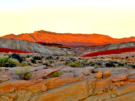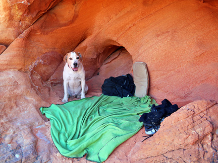 Once into the Valley of Fire, the high winds made sleeping difficult along with the heat. I was super aware with both Mo and myself to constantly drink water... lots of water. The first three places we stopped were not very restful because of the wind, noise and people coming by. I slept a little at each spot because I had no choice. We drove around and took some photos. Springtime is almost gone but every season has its unique and beautiful visual feel. The goal was to find a nice shady cave with a light breeze. We found a perfect spot where I could not only sleep but just sit and look out over the valley. I'm always hiking and moving. Today I just sat for periods of time. It felt like this might be the last time ever in the Valley of Fire and I wanted to soak it all in as much as possible. The last time I ever did anything like this was on the coast of California. Mo and I found a secluded spot on the beach, built a little shelter and just sat with the ocean waves for hours. I knew it was my last hurrah for the beach and I was fulfilling a life long dream of doing just what I was doing. Same for today. Thank God. We also hiked some new areas to see some new amazing vistas. It was overwhelming to say the least. I am so grateful.