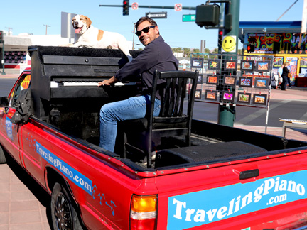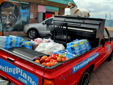 The last day of May it is! Life is about keeping perspective. What does that even mean? One day at a time. Turn it over. Give it up to God. All things pass. God Grant Me the Serenity to Accept the Things I Cannot Change, the Courage to Change the Things I can and the Wisdom to Know the Difference. There are many slogans I have learned and have used successfully over the years. They all come into play in different ways at different times. So onward I continue, we continue. Mo and I went out today did some work giving out water, created some music, took a walk... the music must stay front and center with all of life's distractions specifically world wide. I have just a few pictures left from a few months ago, the old days we call it now, pre virus? Remember, when the Traveling Piano was shared without a care on the streets. Since 2006 now! It will happen again, maybe. If not the music will continue in a different way. But... I cannot imagine it not continuing... I will not imagine that. Working with the homeless is exhausting in a hundred degree heat as a not very in shape old man, ha!