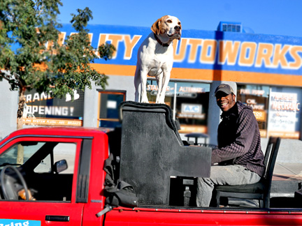 Denise, the owner of Quality Auto Works on Main Street in the Arts District of Downtown Las Vegas, where the Traveling Piano Photo Gallery is... she tuned my truck up today for me... without charge. I think she came into some money and it needed to get done really bad. It has been a year ago this week since we first connected. Since then she has fixed my emergency brake, horn, the air conditioning and a few other things... without charge. And then there is her letting me use her waiting room as an Art Gallery showing right on the Main Street. She appreciates what i do for the community and when she has the money and can make the time, always shares what she has to offer with others. Make no mistake about it she has some dark sides and the people she associates with, some are "real" dark! I have dark sides too. Lol, it can be a challenge for me to keep the light shinning but it is so worth it because I know her true intent which is worthy of lots of respect. I appreciate her help very much.