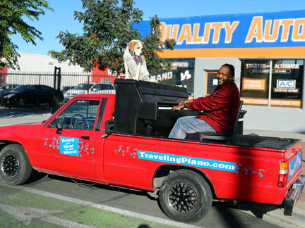 We create music on the street whenever possible and I am still giving out bread and water, cases of it, gallon containers and it is really needed. That is what Mo and I did today. It is very frustrating to not be able to share what is so needed in times like now specifically concerning the police murder of George Floyd that is all over the news. But I can share in spirit, locally. The Traveling Piano has been used to support and heal many a community in times of horrendous misfortune such as now in Minneapolis. For those who do not know, the first 10 years of this journey was self-funded through the sale of my home and belongings. Now a benefactor would be needed to continue as I once did. What is happening is reminding me of past police murders where the Traveling Piano was able to create a pro active presence. One time specifically came to mind today when Mo and I traveled to Skid Row in Los Angeles one week to the day, where a cop killed a homeless man known as "Africa" as he tried to climb inside his tent in fear. Spirit led us to the very spot as I had no idea where it was.