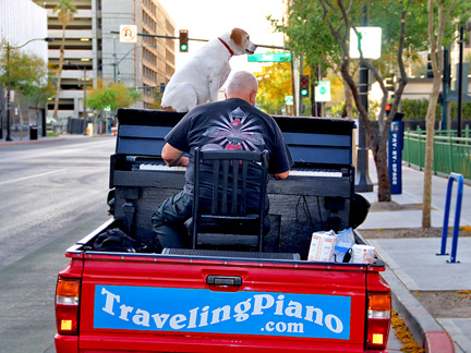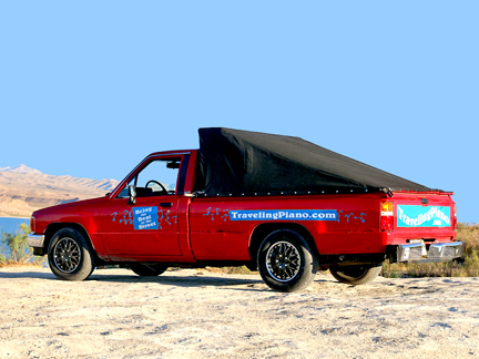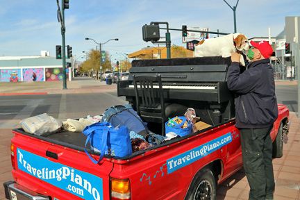 People can really be wonderful. I met a couple out in the desert, nomads, older like my age... the guy, a self-proclaimed "jack of all trades, master of none" tried to help me with the Traveling Piano truck having major problems these days with the electrical truck/music system. The problem got worse as he worked on it, did not know if it was something he did or not. We will never know... they we're to leave their camping spot yesterday but stayed an extra day to help me. As I was leaving the area to return home the charge light lit. They followed me home from the desert, an hour ride to the city. I managed to reach the edge of the city when the truck's electrical system went out, no lights etc... then the truck died. I had it towed and they drove me across town to the station because the tow truck driver would not allow anyone in his truck. We dropped off the truck and then they drove me home, it was after midnight. They had to drive all the way back into the desert.