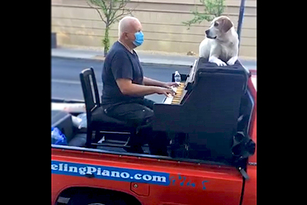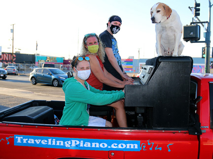 I drove the Traveling Piano over to my friend Sarah's store on Main Street to create some music for her. The weather is so beautiful right now I cannot miss any opportunity to create music. Of course people were out and about. Everyone loves the music. Everyone that tells me they love the music that is, lol. Sarah and her husband Luis we're dressed in matching outfits so I had to get a picture of them both on the piano with Mo. Then I met a mother with her son and daughter from Alaska. With my huge Traveling Piano connection with Alaska I just had to get them up on the piano. They we're wearing masks showing they care, so the risk felt low. But... that opened the door for me, I was on a run. A bunch of dental school students came by and the energy was so great I wanted to get them up onto the piano. It felt like old times. Fund, Friendship, respect...