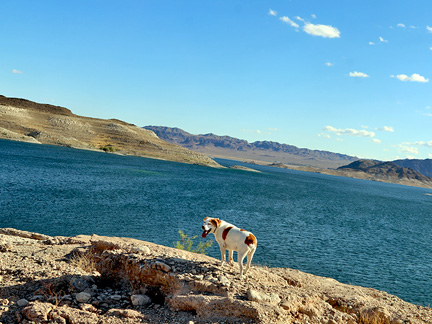 Mo and I ended up at Lake Mead, a man made lake in the desert and I thought how un-natural it feels there. Never the less, it was beautiful, being around some water was just great, it was cool and breezy and not too many people around. Mo and I climbed the rocks a little. His leg agility is fading fast. I am so glad I can give him all the enjoyment in nature that is possible. He's feeling especially tender and loving today. We love each other so much! When I first drove in I had planned on creating some music by the water when we were done exploring, but when it was time to go the energy to do it just was not there. In another time it will happen.