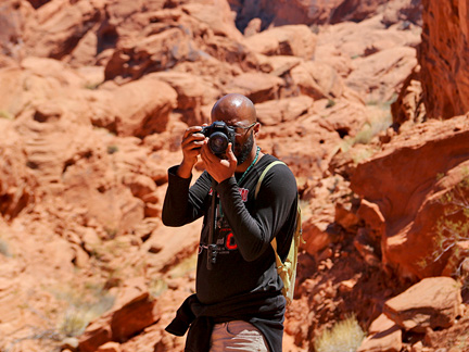 My neighbor Miles who has helped me serve the homeless several times, we went to see some desert today. He had not been to the Valley of Fire or Lake Mead and so that is where we headed. It is only the second time in five years that I did something social with a neighbor and it feels good. I've had so many insane neighbors! It was hot and wow, my physical strength for hiking, Mo too... just gets less and less every time we are out because of age. Miles went with the flow beautifully for our needs. He is a videographer, photographer, marketer. So when he takes pictures of me it is never with a pose. I always must be doing something.