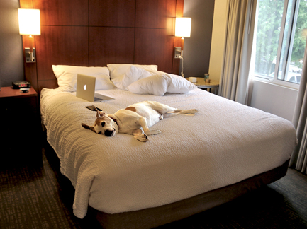 It is raining out and a good excuse to just chill with my pup on our hotel bed with some photo processing to do. Hmm... I've got 4 pillows with different feels to choose from on our king size bed with clean white sheets, which pillow shall I choose for today... I say with total gratitude! Is it August already? Yes, it is August. I feel very detached from Las Vegas right now. One Day at a Time...