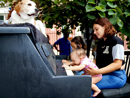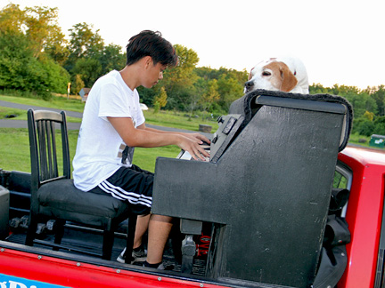 I love babies on the Traveling Piano! A young teen who came to play basketball with his friends came over. He was fairly accomplished from years of classical piano lessons and played some really beautiful music! Two local teen girls came over and we're very interested in everything about me and my thinking. The kind of people here I know well. Very suburban almost upper middle class interested in education and comfortable in the neighborhood lifestyle. I like it and the kids where enthralled I hope for a life time. If they email me for their photos they will remember for a life time. Otherwise, I don't think the experience will stick in a conscious state of mind past a few months. Little can compare to the energy, joy and excitement of young kids interested in discovering life in different facets and how it all works.