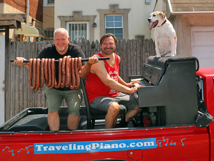 I told the guy John that we we're visiting from Las Vegas and wanted a picture while mentioning the Traveling Piano outside parked in the ally. He showed interest and of course you know what happened as a result! It was all a fast and short time of synchronistic, spontaneous, furious musical picture taking fun, friendship and respect and... John gave us everything as a gift, enough Kielbasa for breakfast, lunch and dinner for a week. And all this, thanks to everyone who has been contributing to our journey! 24 Days to goal in helping Mo and I to keep going and then get back to Las Vegas. Contribute through Facebook here: Traveling Piano Facebook Fundraiser and through GoFundMe: Traveling Piano GoFundMe Fundraiser or PayPal Direct: Danny Kean and of course on this website Contribution Link just look to the left of the page!