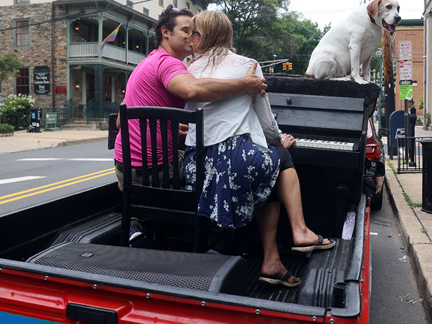 A friend from New York City who I've never met came to connect today at a point somewhere in-between where I am staying and her home. That would be Lambertville, New Jersey. I have always like this town as it has always felt simple with deep history and it is non-pretentious. Make no mistake, it is also a tourist spot. We parked on the street and there was a non-stop supply of people wanting to engage and find out what the Traveling Piano is about. Can we talk total fun? There was one dic head who irrationally attached himself to me with palatable rage and would not stop. I told him to "get the fuck outta" here after he tried getting in my face. As I said it, I thought... oopsie! Doing that with irrational people only makes a bad situation worse. The moron then followed me to a public parking area with his truck and where I was going to leave the Traveling Piano truck but could not because of the obvious. So I drove to the local motel on the street and asked if I could use their parking lot.