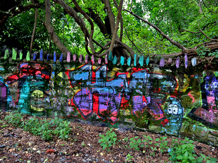It was once an amazing garden with rocks and running water falls. Now it is just weeds in water hardly seen with huge historic stone steps and walls built in 1812 now covered in graffiti. I've been really disappointed with my old home town. It is dirty, trashy and unkept in most areas I've been in. Returning to where I am staying I am in awe how my Google phone map takes me on a different route every time. How can there be so many ways? When heading home I want to get there as soon as possible but at the same time am fascinated with new roads and neighborhoods I've never seen before, ever. One good thing about Philadelphia... the houses are amazing with character and age both groomed properties as well as houses in natural areas. If only the public spaces of the city were as well kept, the poor neighborhoods cared for and with the food... it would be one of the best cities in the world to live in.
