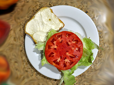 After getting up at one in the afternoon, I diddled, made a fresh baked soft white bread with lettuce, mayo and a 3/4" slice from a 5" round fresh picked jersey beefsteak tomato, sandwich... nom, nom, nom... took a picture of it and uploaded it onto the internet. Had a bag of potato chips with two bowls of ice cream, made another sandwich, did the blog for yesterday and today, took Mo for a little walk and that was it! All except for answering an email bite from the bait put out a few days ago for a place to stay in New York City. My friend Eileen put out energy to find me a place, a guy Bobby wrote a terrific article for a NY blog which was posted online and then someone emailed me saying I could stay at their place, they might be leaving for a week. And I thought... "no, no, no I do not want to do this." What have I got myself into? There is no chance of not doing it if it should work out. I must follow through on everything I say to others that I will do. I always have, it is very important, it is called being a professional. If it happens I know it would be fun and worthy and purposeful and I would find the energy somehow but oh, the fear! I'm staying where I am for another week and a half. It will be a matter of logistics, parking the biggest issue and I would have to sleep on a couch...