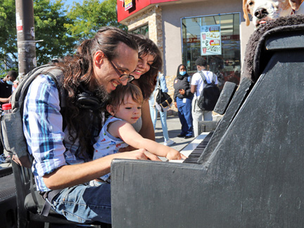 We went to a Humpback Covered Bridge today, that is the name of it and and it is only a couple miles away from where we are staying. The leaves have not changed color yet, and it is being said the colors will not be good because of the lack of rain here. Thats disappointing because that is my main desire, to see the fall colors. Up north I bet they are spectacular as they have had tons of rain. Anyway, anyone around was very interested in the Traveling Piano and easy to engage with. I played a little, they played a little and I got some photos of people and the area.