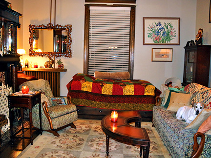 The sun came out for the first time in a week for a little bit of time today! I just hung around the house. Bill and Bev said I could rearrange some of the house and so I worked on making one room less cluttered and also organized some of the kitchen. The place is as full of "stuff" as can be. Figuring out how to operate in such a large space after so many years is not easy. Finding where the lights and plugs are, where to put my things so it does not get lost in their things, sometimes I just walk back and forth in and out of rooms and around lost in my head with it all. But, I have also done that in just one small motel room too. I'm getting used to the place and it is beginning to feel real good! Mo and I are sleeping in the cellar which is very dark but it has a king size bed, is quiet and the area is big. That verses a small bedroom upstairs or a single mattress type bed in one of the parlors. I miss waking up to the sun but this place is perfect for a classic fall weather stay in the country. Wow, October 10th already!