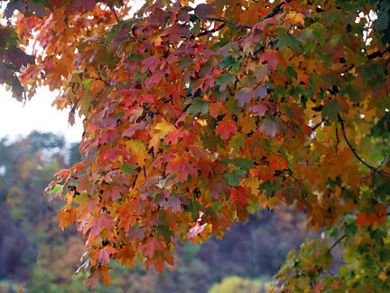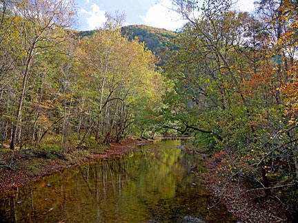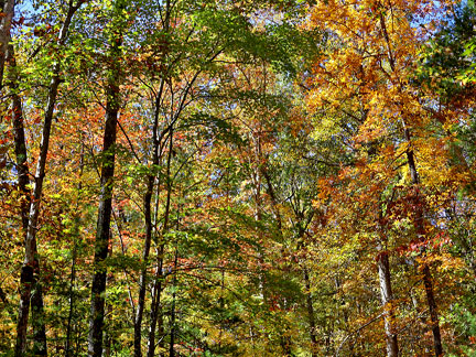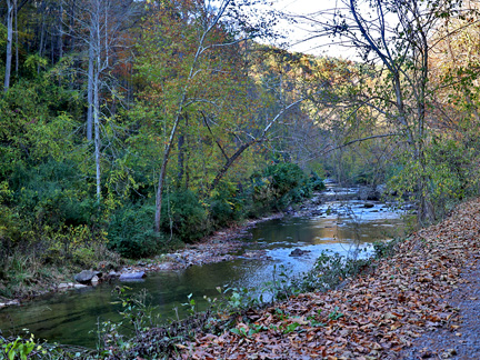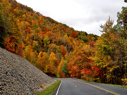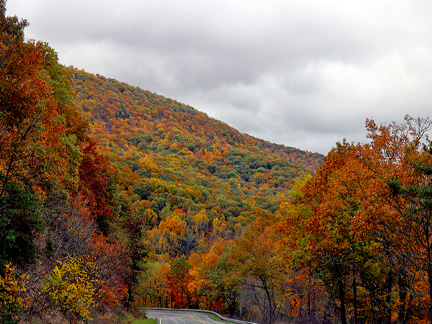 The truck started, stopped and then the engine started again on its own. How does that happen? The growling sound underneath is now constant. We drove to Roanoke an hour and a half away to get some dog food. If it is going to breakdown, I want it to break down here where I have a place to stay while it is getting fixed and not in some strange place while crossing the country. There was some nice color in spots along the way and they we're deep as it was cloudy, rain was on the way.
