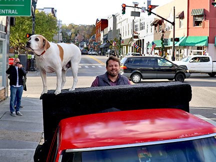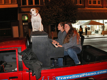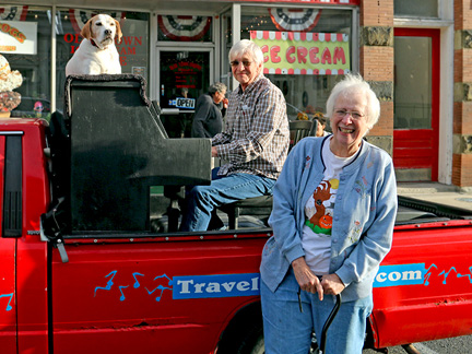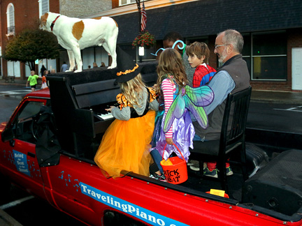 Whenever the weather forecast says rain I think, good now I can get some needed work done as I can't go outside. But, it never seems to rain enough to stay in for a full day. Someone from the city emailed to ask if I could come to the downtown Halloween event. I said I would if it was not raining. The rain did stop for about an hour so Mo and I went out for about an hour. The main street is only two blocks from where we are staying and the town is small with not much money so the event was small. I enjoyed being there and we did have some fun with folk. I don't think the city people knew we were there. People making the event happen packed up and left early. Everytime I go to a town event I am reminded of my past. For example the Halloween parades year after year were a hoot! And, they we're big and the Traveling Piano was a intregal part of those parades. Did that, done that, I'm glad I stopped when I did so I can still look back with fond memories. I used to do up to twelve different Halloween town parades each season. Ahh... the money! I used to clean up but I also had to produce.