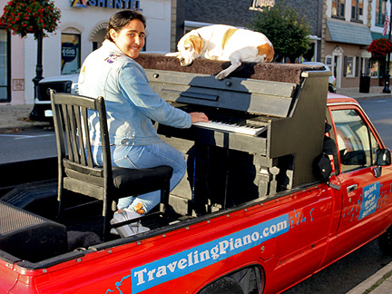 The place was like a tourist destination lived in by mostly locals. I've never seen so many dogs in a community. It seemed like 30% of people had their dogs with them. This is my kind of place to live in. Washington DC is only an hour away as well as many other bigger cities. Yet, there was a feeling of a small isolated place in of itself far away from anything large. Of course the Traveling Piano became an immediate hit. We we're there for way too short of a time. The newspaper wanted some photos but I was having dinner with Joanne and Paul. My time with them was more important. There have not been many people I have connected in life where I can truly enjoy their company and talk on and on forever with. Joanne makes and sells soy candles and she brought a years supply for me! The truck has been making an unusual sound from underneath and it is loud. I've been trying to ignore it and just keep calm. Maybe it will go away. Problems come and go all the time some needing a tending to others not.