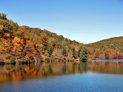 Well, I'm getting the color I was looking for. We went to a nearby state park and hiked. I think the enjoyment gave me some stimulation because I had more energy than usual. It felt like the fall walks I used to have in the Cacapon State park in West Virginia where we had a home base for several years. It was beautiful with hills and ground carpeted with leaves, the colors and a huge lake. Before leaving I created music at a perfect spot and it was just beautiful. We got to share it all also with some nearby people. I'm completely grateful that I am experiencing autumn back east one more time! It was part of the dream of this journey that I did not think it was going to happen. No way did I ever think we would be on the east coast this long.
